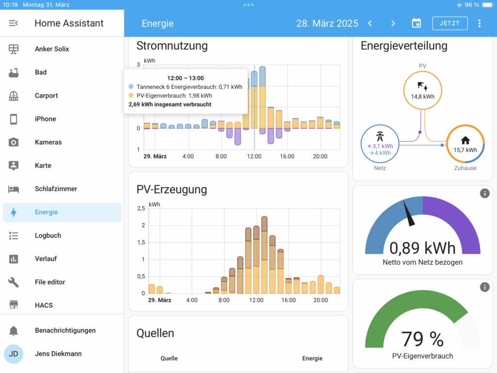 In diesem Artikel möchte ich konkret beschreiben, wie ich den am Tage erzeugten Überschuss meiner Solaranlage in ein E-Auto lade. Die Steuerung wird mit der Smart-Home-Anwendung „Home Assistant“ realisiert.