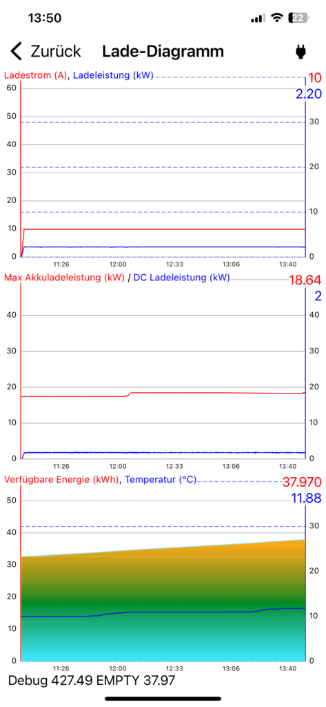Zu den Verlusten im Fahrzeug kommen dann noch die oben gemessenen Verluste meiner Ladeinfrastruktur hinzu.