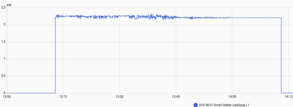 Ohne PV-Überschussladen wären zu dieser Zeit 1600 Watt als Überschuss (mit minimaler Vergütung) ins Netz gegangen.